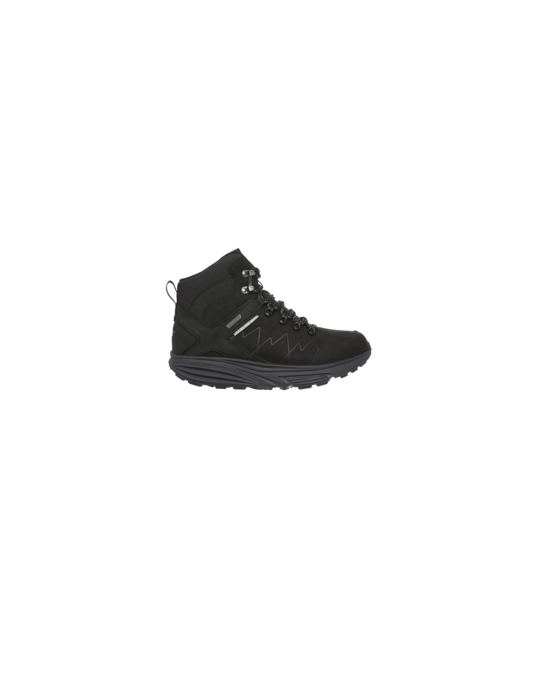 Bottine Trekking mi-haute solide en couleur noir pour hommes avec lacets. La forme comfortable laisse de la place libre au pied. Semelle robuste anti-dérapant. Index MBT: Degré 2